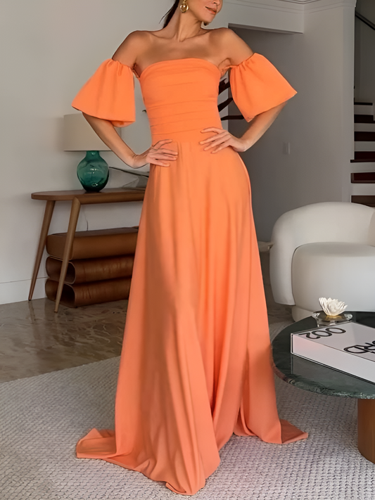 Pleated Tube Top Puff sleeves Maxi Dress