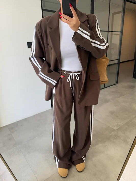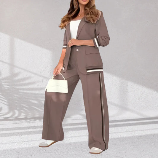 SAVE 50%Levvie Stripe-Trim Blazer & Pant Set