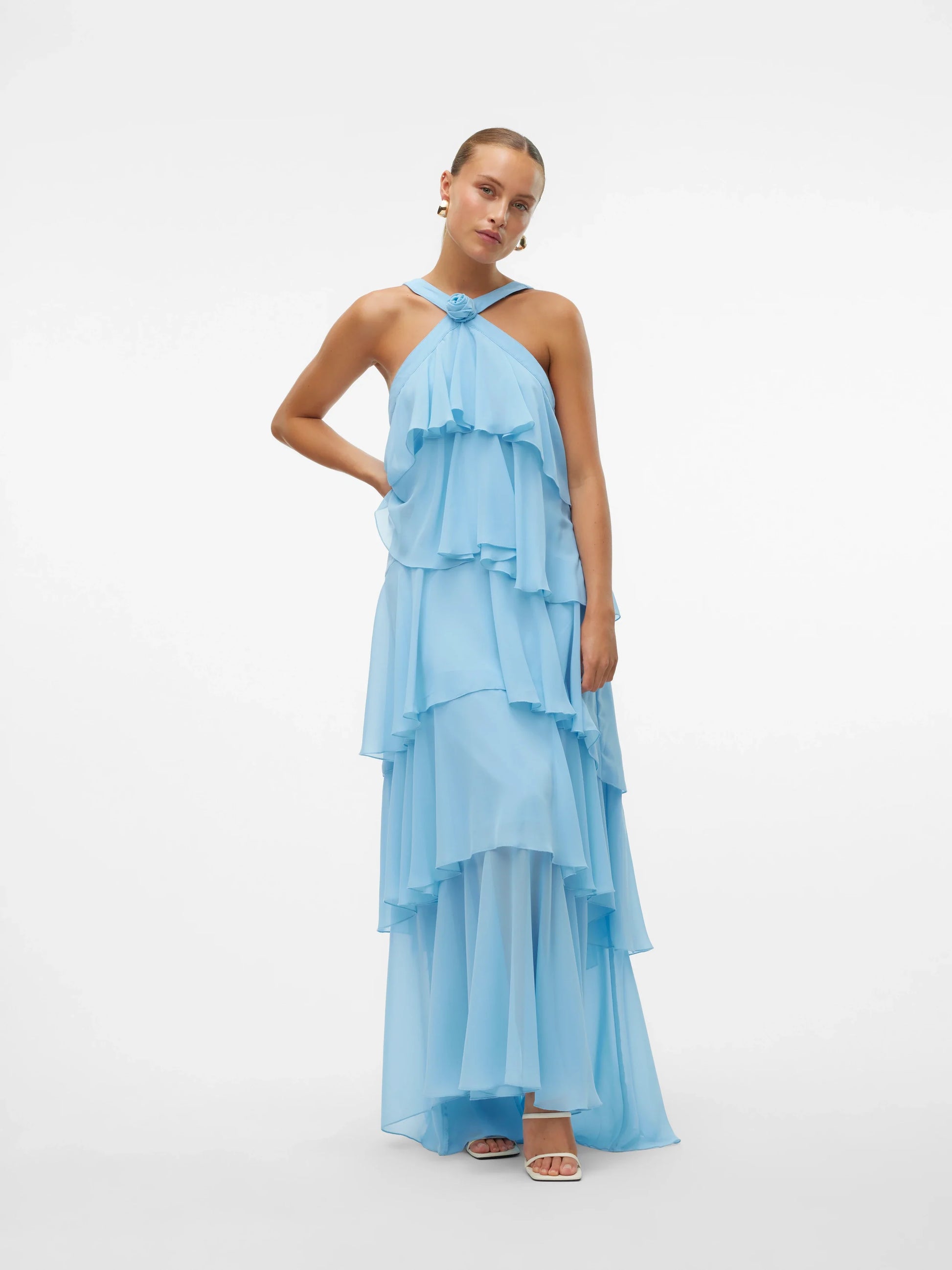 Romantic and ethereal, meet your new statement piece for the season – the Zaya Ruffle Maxi Dress. Crafted in airy sheer fabric, this dreamy silhouette flows with every step in soft blush pink. The halter neckline is delicately adorned with a floral rosette, while cascading ruffles bring volume and movement for an ultra-feminine finish. Whether you’re attending a summer soirée or dressing up for a sunset dinner, Zaya is designed to make you feel effortlessly elegant.